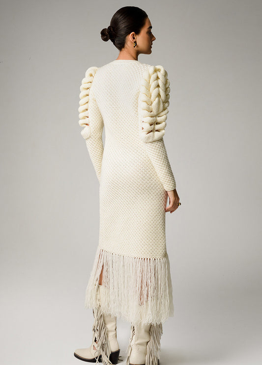 -30%Hand KnitIVORY FRINGE DRESS