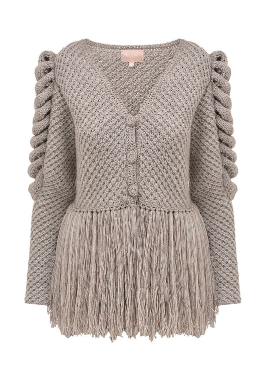 -20% Best Seller GEHand KnitCREAM CARDIGAN WITH FRINGES