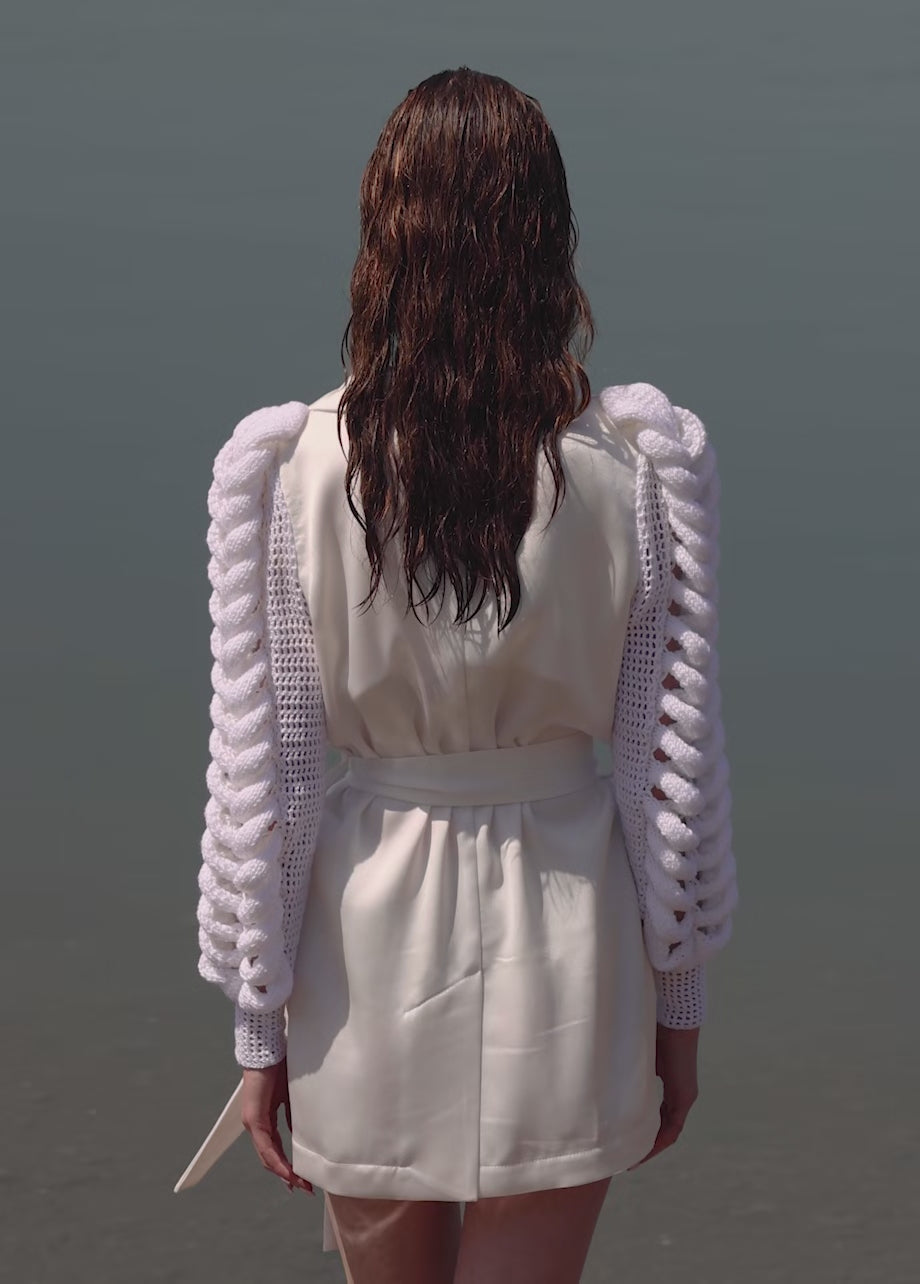 LIYA's all time best-selling jacket is perfect for any season and event. The inclusion of white knitted sleeves adds a luxurious feel and timeless elegance.